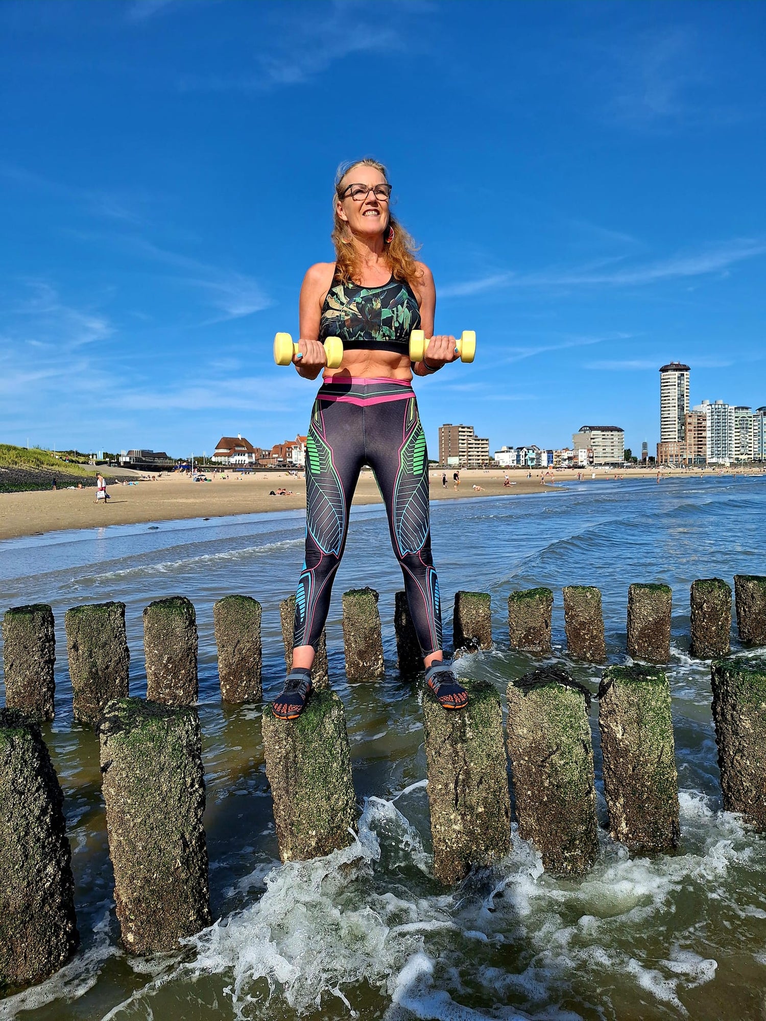 Ik bleef creëren, en toen ik drie jaar geleden werd gevraagd om op maandagavond les te geven aan 20 dames boven de 50 jaar, heb ik de hardrocknummers erin gehouden. (En nu hoor ik van de dames dat hun kinderen en vrienden hen nu heel stoer vinden omdat ze meezingen met Lola Montez van Volbeat.) Er is wel meer variatie: van 70s, 80s, 90s disco, jazz/blues, zumba en top 40—je komt van alles tegen in een workout. Ik geef inmiddels weer les aan drie groepen per week en voel me fitter dan ooit. Nog steeds maak ik mijn eigen choreografieën, waarbij ik altijd voor ogen houd wat mij motiveert, omdat dat ook jullie motiveert.